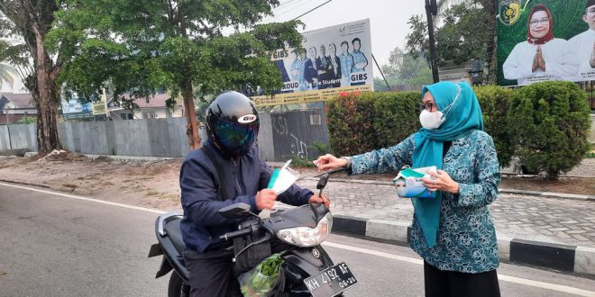 INFOBORNEO, Palangka Raya – Tim Penggerak Pemberdayaan dan Kesejahteraan Keluarga (TP PKK) Kota Palangka Raya membagikan masker gratis kepada masyarakat yang melintas di sepanjang Jalan Diponegoro dan pertigaan Jalan Cempaka, Kota Palangka Raya.
