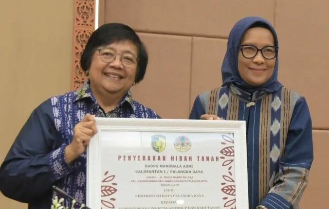 Penjabat (Pj) Wali Kota Palangka Raya Hera Nugrahayu menyerahkan secara langsung hibah tanah tersebut kepada Menteri LHK RI Siti Nurbaya Bakar, saat kunjungan kerjanya ke Kota Cantik, Selasa (23/1/2024) lalu.