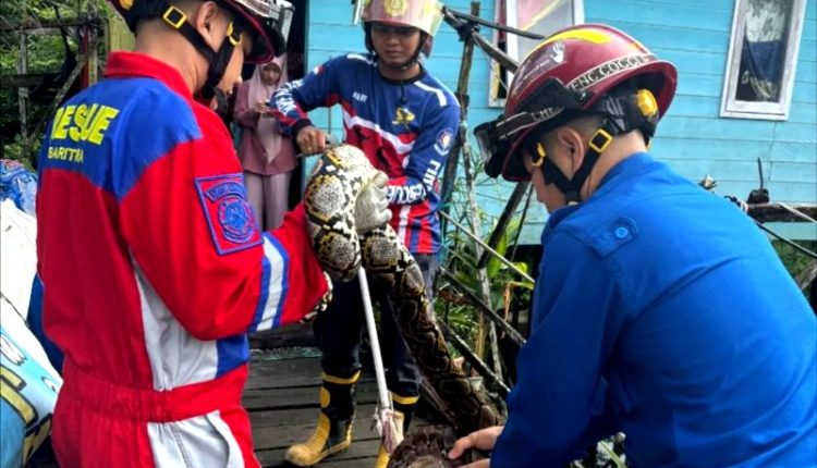 Ular Piton 2,5 Meter dari Kandang Ayam Warga di Evakuasi Disdamkarmat Barito Utara