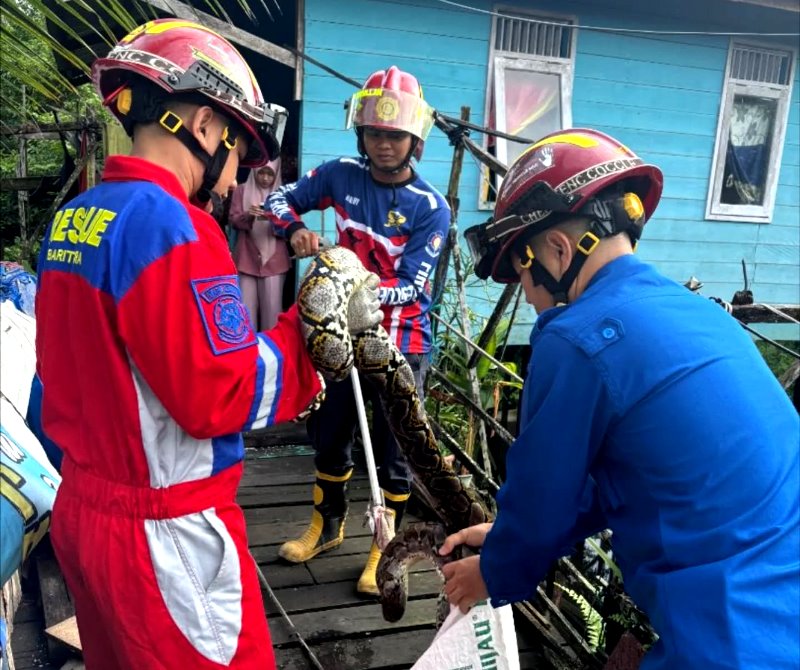 Laporan mengenai keberadaan ular tersebut diterima melalui layanan darurat 1×24 jam Damkar dan Penyelamatan Barito Utara pada pukul 07.00 WIB.