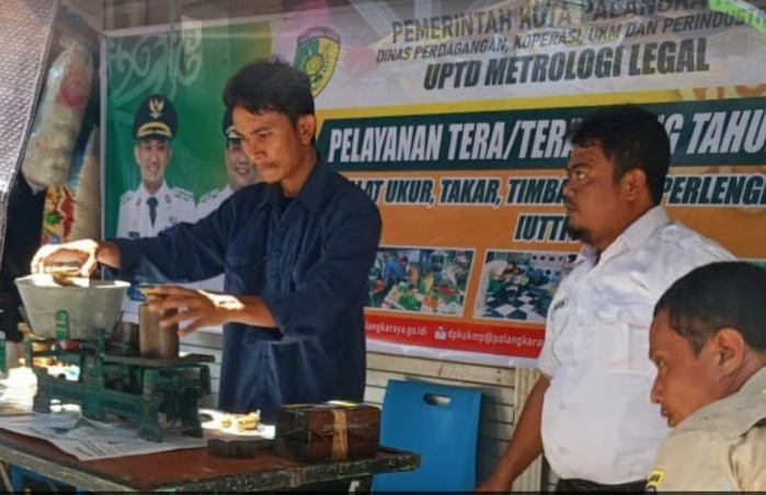 PALANGKA RAYA, INFOBORNEO.COM – Upaya menjaga keadilan dalam transaksi jual beli kembali ditunjukkan Pemerintah Kota Palangka Raya melalui kegiatan tera ulang timbangan di Pasar Besar.