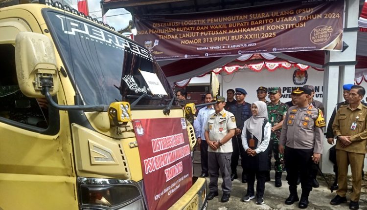 MUARA TEWEH, INFOBORNEO – Penjabat (Pj) Bupati Barito Utara, Indra Gunawan, secara resmi melepas distribusi logistik Pemungutan Suara Ulang (PSU) Pemilihan Bupati dan Wakil Bupati Barito Utara Tahun 2024. Kegiatan pelepasan ini dilaksanakan di halaman Kantor Komisi Pemilihan Umum (KPU) Barito Utara, Senin (4/8/2025).
