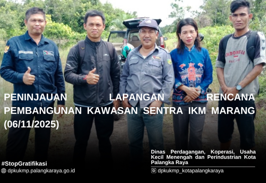 PALANGKA RAYA, INFOBORNEO.COM – Peninjauan ke lokasi rencana pembangunan Sentra IKM Marang dilakukan guna memastikan pembangunan sesuai kebutuhan masyarakat. Kegiatan ini dipimpin oleh DPKUKMP Kota Palangka Raya bersama Tim Kelurahan Marang pada Kamis (6/11/2025).